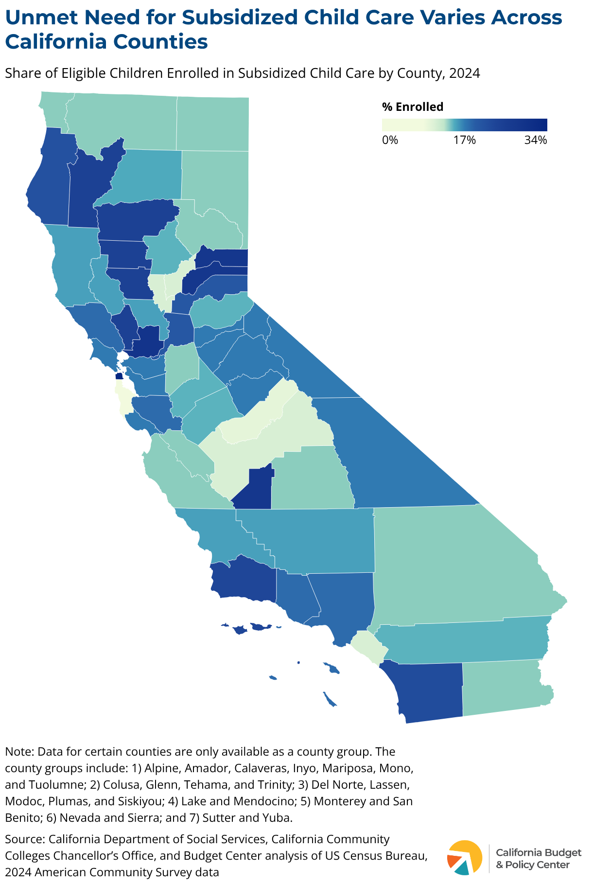The unmet need for child care remains alarmingly high. With the Newsom administration walking back plans for expanding the number of subsidized child care spaces, families and children will continue to face unnecessary challenges with meeting basic needs. Key implications include: